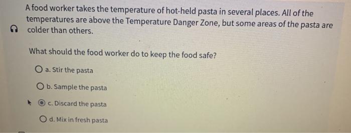 Solved A Food Worker Takes The Temperature Of Hot Held Pasta Chegg Com